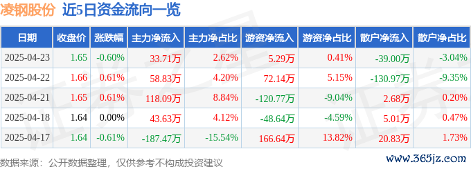 恒瑞行配资 股票行情快报:凌钢股份(600231)4月23日主力资金净买入33.71万元