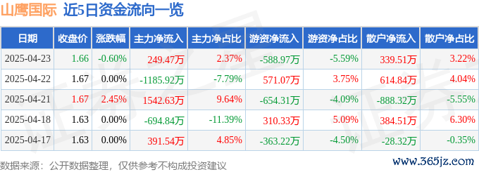 本站消息,截至2025年4月23日收盘,山鹰国际(600567)报收于1.66元,下跌0.6%,换手率1.16%中证所,成交量63.22万手,成交额1.05亿元。