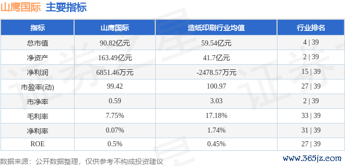 山鹰国际2024年三季报显示,公司主营收入216.02亿元,同比上升1.36%;归母净利润6851.46万元,同比上升158.86%;扣非净利润-4.4亿元,同比下降22.77%;其中2024年第三季度,公司单季度主营收入73.47亿元,同比下降2.87%;单季度归母净利润-4503.31万元,同比下降129.11%;单季度扣非净利润-3.32亿元,同比下降528.73%;负债率69.49%,投资收益2.78亿元,财务费用8.15亿元,毛利率7.75%。山鹰国际(600567)主营业务:箱板纸、瓦楞原纸、特种纸、纸板及纸制品包装的生产和销售以及国内外回收纤维贸易业务。